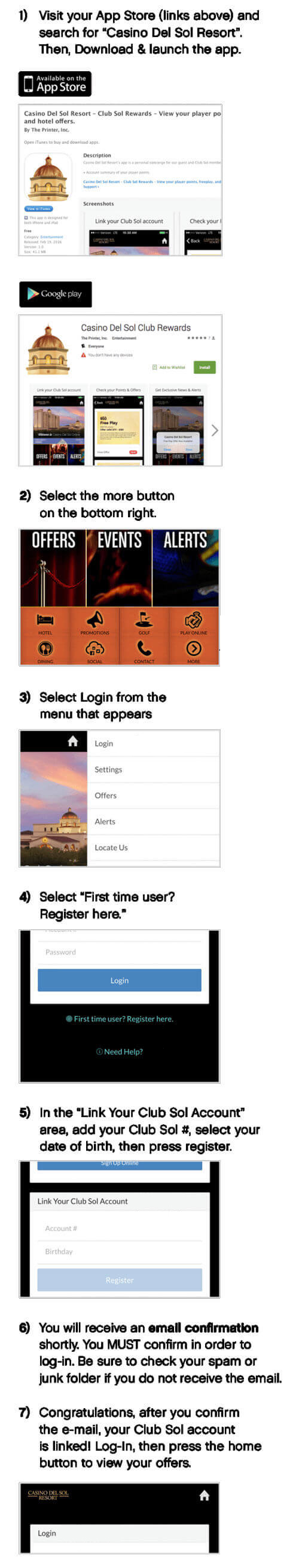 Receive additional bonus offers, check point balances and tier status, and more by downloading the Casino Del Sol App.